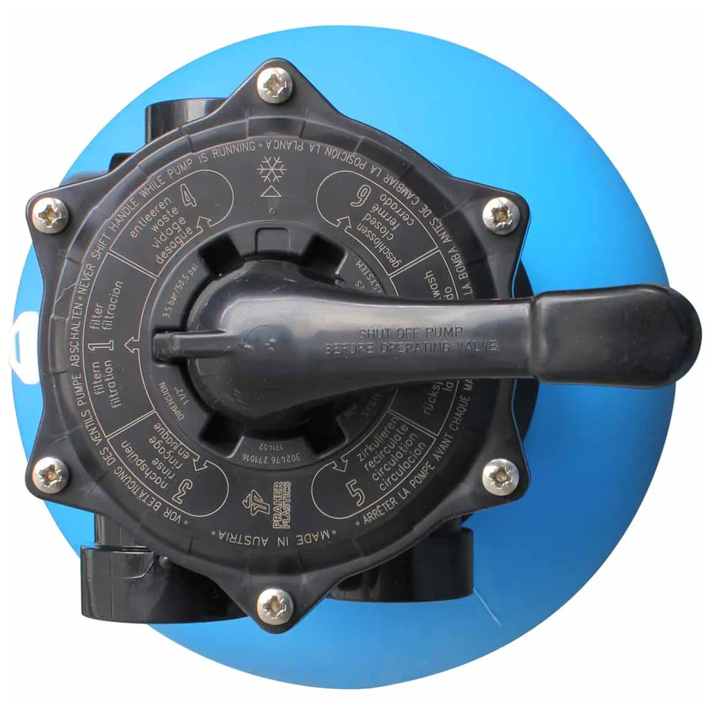 Die hochwertigen Sandfilterkessel der Serie Classic PRO Aqua bestehen aus einem 1-teiligen Polypropylenkessel mit Kesselentleerung, Mehrwege-TOP-Ventil mit Manometer, Spannring mit Edelstahlschrauben-Kit und kompletter Innenverrohrung. Lieferung unmontiert im Karton, ohne Filtersand6-Wege-TOP-Ventil = Filterkessel Ø 320, 400 und 500 mm