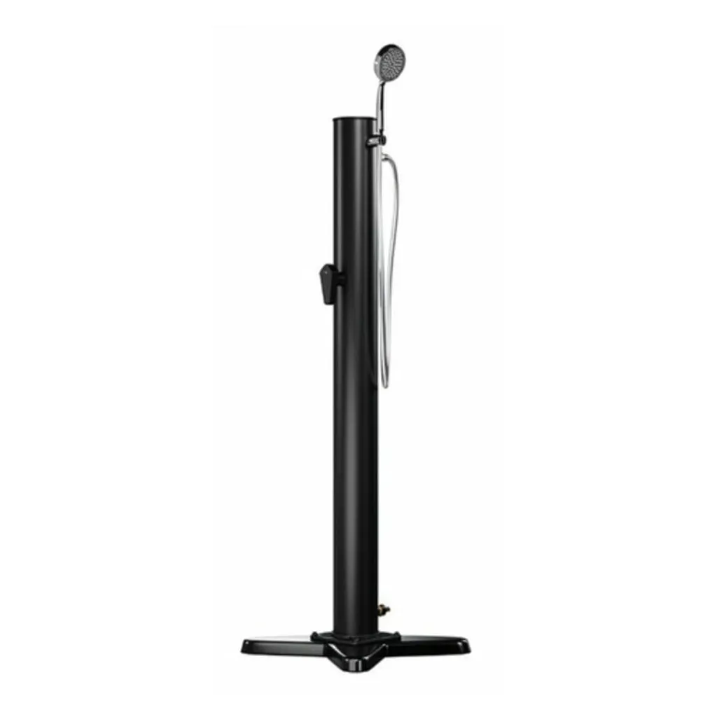 Die portable Solardusche mit einem Fassungsvermögen von 14 Litern bietet flexible Einsatzmöglichkeiten im Garten, beim Camping oder am Pool. Der schwarze, UV-stabilisierte Kunststoff sorgt für eine effiziente Erwärmung des Wassers durch Sonnenenergie. Ausgestattet mit einer Einhebelmischbatterie und einer hochwertigen, verchromten Handbrause ermöglicht sie eine komfortable und individuelle Nutzung. Durch ihre kompakte Bauweise ist die Dusche leicht zu transportieren und schnell einsatzbereit.